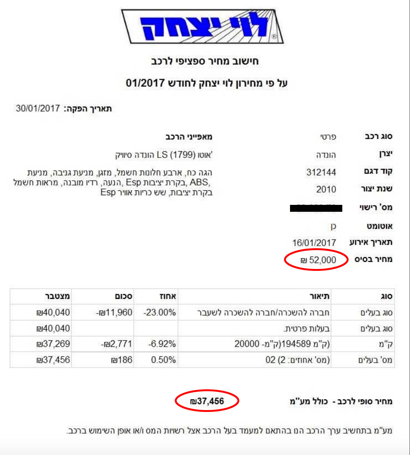 חשוב לדעת שבמקרה של תאונת דרכים, שמאי הרכב וחברת הביטוח משלמות וקובעות את שווי הרכב לפי מחירון ״לוי יצחק״ בלבד. לא משנה כמה עלה הרכב וכמה שולם בשעת קנייתו. אנו לא עובדים לפי מחירון יד 2 או מחירון נוסף אלא רק לפי "לוי יצחק".